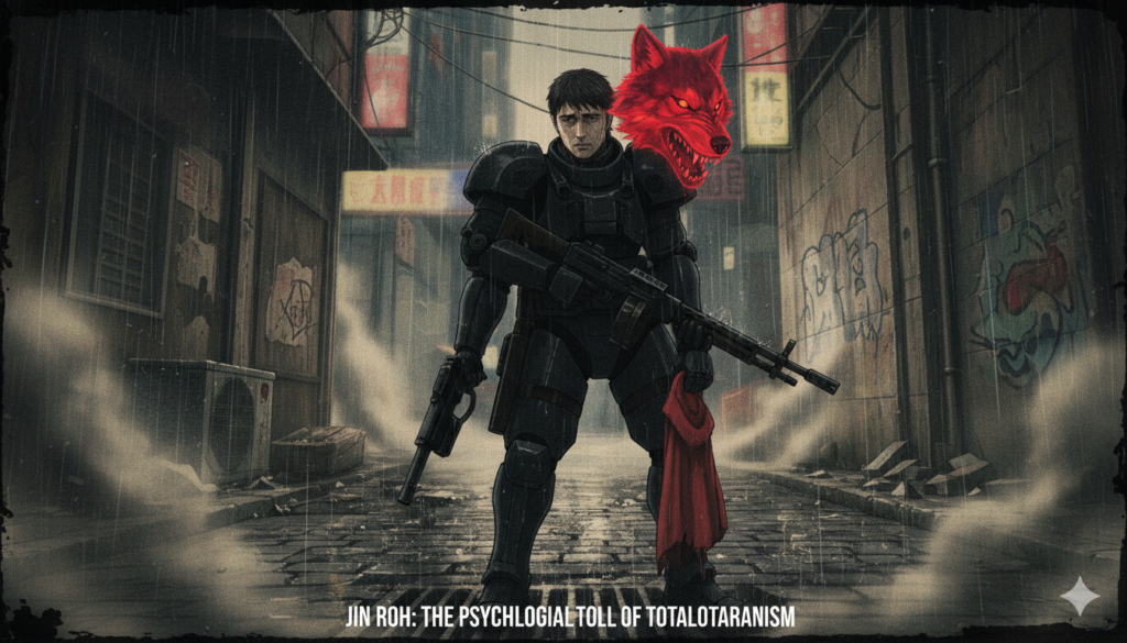 Jin Roh is deeply concerned with the political themes of totalitarianism and state control. The government’s oppressive policies stifle freedom, and the Kerberos unit represents the militarized arm of that control. The secrecy of the state’s dealings and the surveillance of the population create a world where personal freedom is a distant dream.